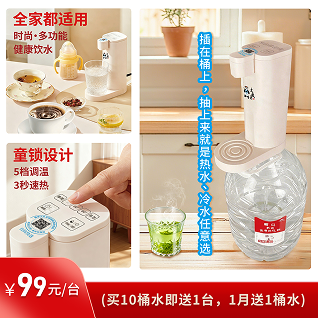 【桶式即热饮水机免费】时尚5档温度仅需99元送99元水(每...